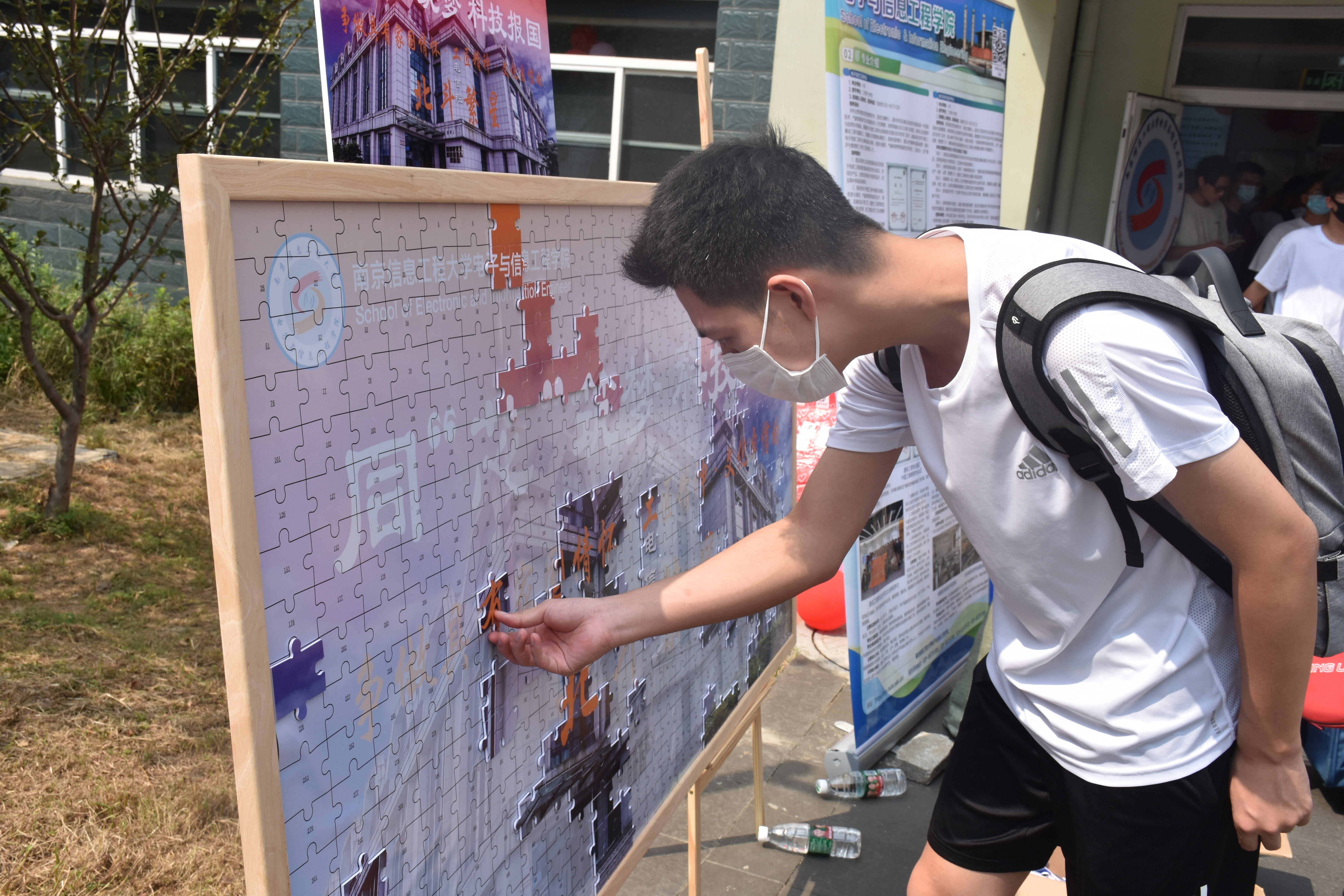 今年迎新现场的创意活动让更多新生有了“参与感”。拼图活动以电信院学科二号楼为背景,制成总数为670块的数字拼图。电信院全体新生亲自参与拼装,一块一块共同组装成代表了老师学长学姐们心意和电信院精神的整个大拼图,通过该活动引导2022级新生们同“芯”筑梦、科技报国,用自己的知识为祖国的发展贡献青春力量。愿望卡活动中,新生随即抽取一张明信片,不仅可以收到载满学长学姐们美好祝愿的明信片,还可以根据祝福的内容领取一份学院准备的开学小礼物。