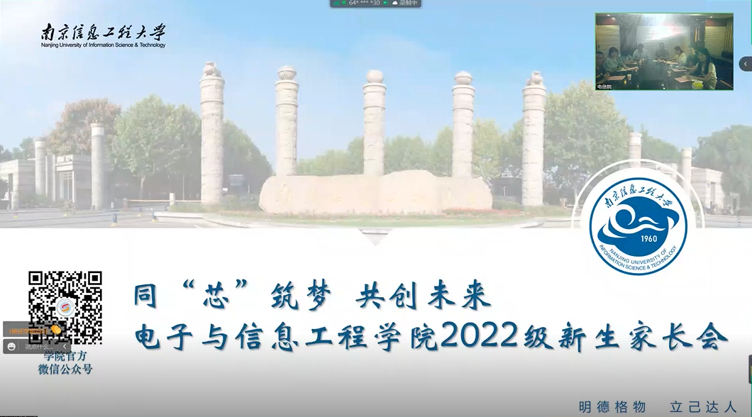 为增进新生家长对学院工作的了解,增强新生家长与学院之间的联系,推进家校双方协同育人,9月13日下午2点,电子与信息工程学院召开“同‘芯’筑梦 共创未来”2022级新生家长线上见面会。电子与信息工程学院院长张治中、党委书记崔维军、党委副书记副院长叶玉娣以及全体2022级新生辅导员和家长们参加本次会议,会议由学院分团委书记金红主持。