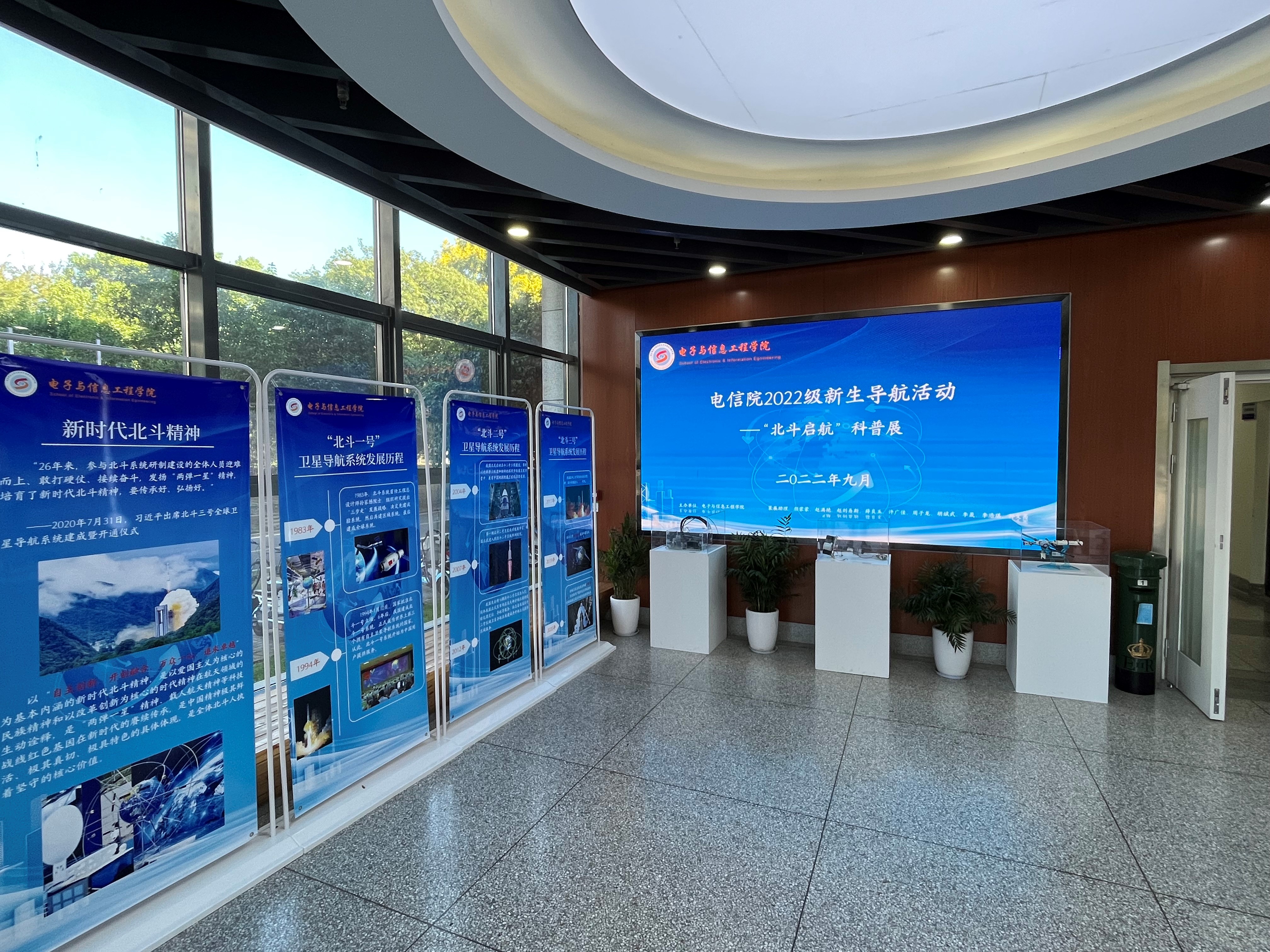 9月12日,电信院2022级新生导航活动——“北斗启航”科普展在学科二号楼一楼门厅正式开幕。本次“北斗启航”科普展依托“北斗启航”大学生科技志愿服务项目,以“北斗知识”科普为主题,梳理了北斗导航发展历程,阐述了新时代北斗精神。