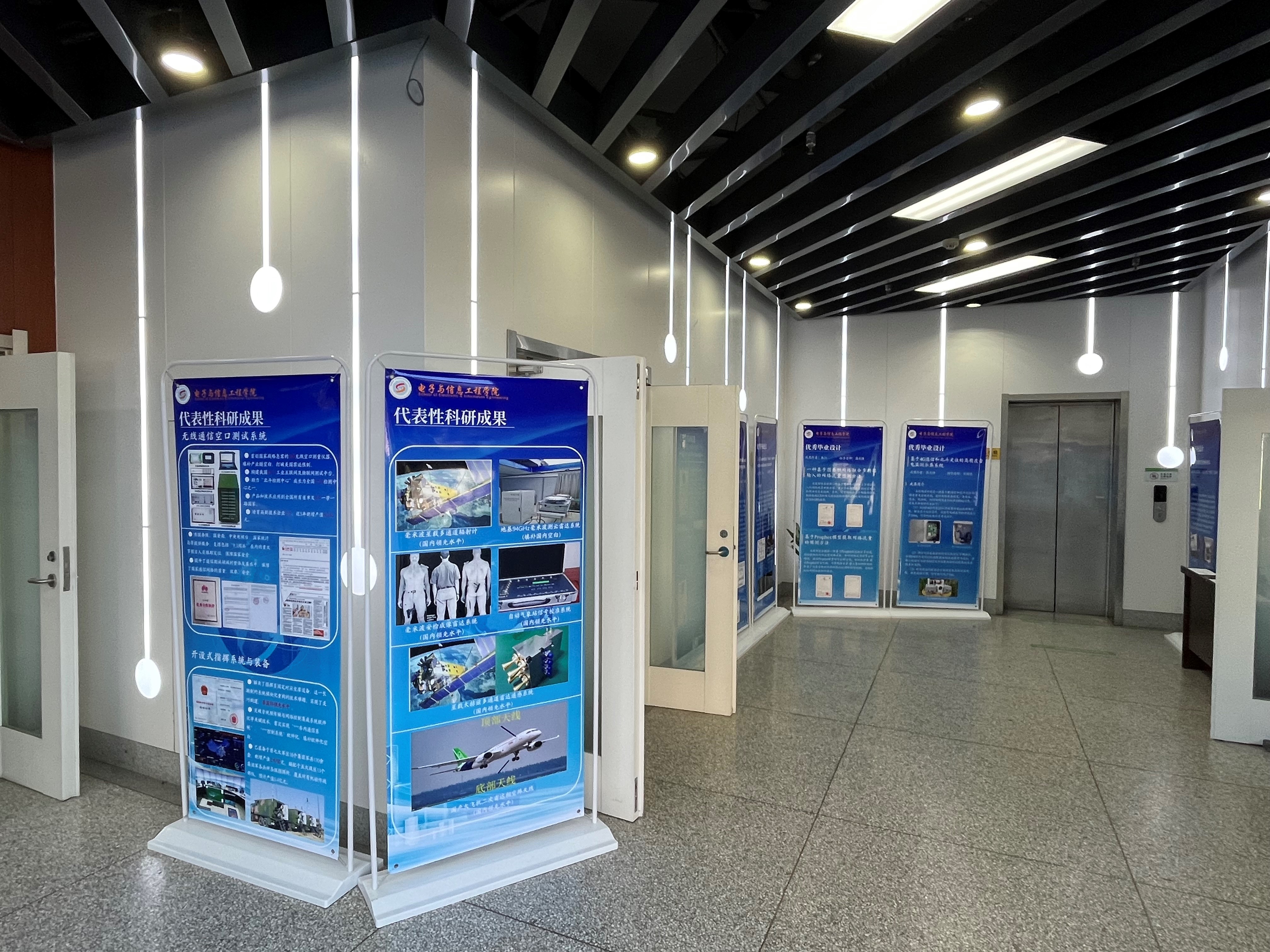 本次展览还展出了学院师生在“北斗”领域的代表性科研成果,吸引了大批新生驻足观展。在展示环节,策展人有机地协调并实现了布展工作的“三结合”:传统展架和玻璃展柜的结合、文字展品与科技实物的结合、展品信息卡与作品二维码的结合。既实现了观众观展的舒适性,又满足了科技实物的受保护性。