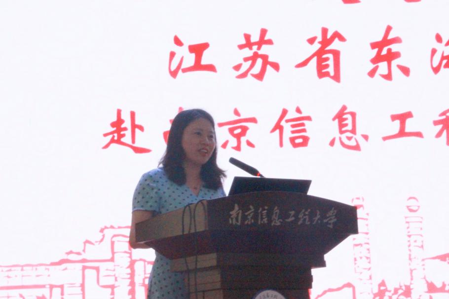 郝咏梅致欢迎辞,她代表学校对来访师生表示热烈欢迎。她以“最卓越”“最硬核”“最大牌”等十大关键词为引,介绍了我校的办学历史、学科建设、师资力量等情况。她希望同学们通过此次的研学之旅,能够更直观地了解南信大,为大家的学业规划提供有效参考,也希望东海高中与我校建立更加深厚的情谊。
