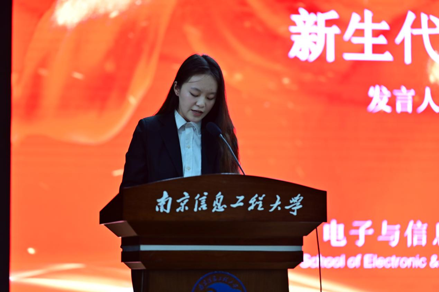 新生代表张馨月发言。她号召同学们秉持科学精神,在生活和学习中精进不怠、锤炼本领、完善自我,在工作中服务同学、协助老师,展现自己最靓丽的风采。作为团学新力量,她希望和大家一起在团学组织中勤学善思、踏实肯干,在老师和学长学姐的引领和帮扶下,迈出坚定的每一步,坚守只争朝夕、百折不回的坚毅,秉承脚踏实地、久久为功的作风,用实干浇铸梦想之花,用奋斗书写梦想华章。