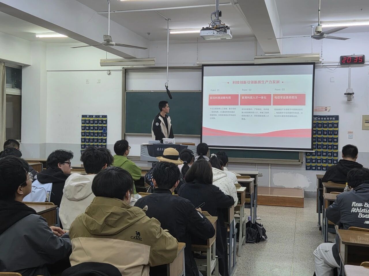 活动中,各团支部以专题学习、研讨交流为主要形式,聚焦科技自立自强、绿色转型、新质生产力等核心议题开展深度解读,引导电信学子紧跟国家发展大势,找准个人成长与时代需求的契合点,让青春奋斗锚定方向、行稳致远。