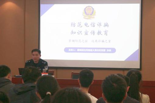 紧绷防范之弦,远离诈骗之害。在第八个全民国家安全教育日来临之际,为进一步增强师生国家安全意识,提升广大师生防诈反诈能力,普及法律常识,筑牢安全防线,4月11日下午,电信院特邀盘城派出所南信大责任区民警孙跃警官在学科二号楼N201开展以“防范电信诈骗知识宣传教育”为主题的安全教育法制讲座,学院辅导员、各班安全员和宿舍长参加讲座,讲座由学院辅导员左香草主持。