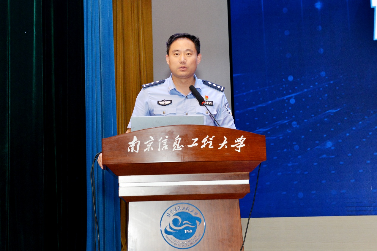 为切实增强2025级新生的安全防范意识,有效抵御电信网络诈骗等各类校园安全风险,帮助新生快速树立 “安全第一” 的认知,9月18日晚,电子与信息工程学院在风云剧场举办2025级新生安全教育大会。本次大会特邀请盘城派出所驻校民警孙跃警官主讲,学院 2025级全体新生、辅导员参会,大会由辅导员杨琪主持。