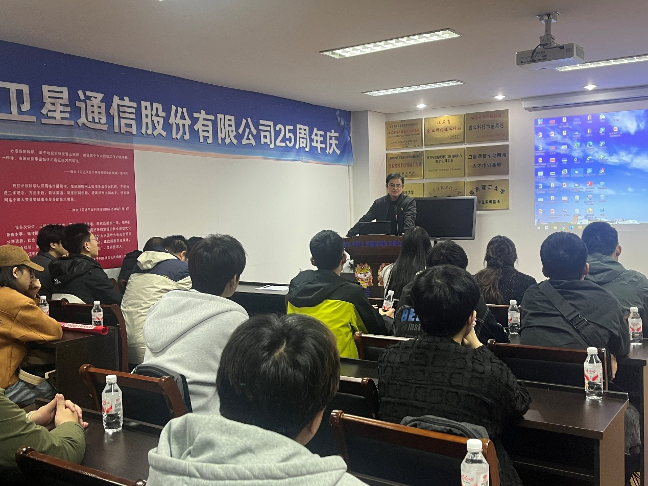 为进一步拓宽学生就业渠道,推动2026届毕业生更充分、更高质量就业,深化校企合作内涵,扎实推进“访企拓岗促就业”专项行动,11月5日上午,电信院师生代表赴中网卫星通信股份有限公司,开展以“党建护航强引领,访企拓岗促就业”为主题的交流活动。中网卫星通信股份有限公司云卫通产业技术研究院院长李玮、业务中心与客户服务中心总监达勳、人才发展部主任曹华、射频天线工程师高峰,电信院学办副主任黄开洁、研究生辅导员左香草、本科生辅导员杨琪以及40余名本硕学生共同参加。