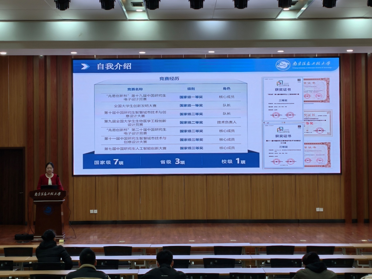 11月28日,电子与信息工程学院第93期“勤笃”学术论坛在滨江楼二楼报告厅成功举办。本期论坛以“学科竞赛备赛经验分享”为主题,邀请了在多项国家级、省级竞赛中屡获佳绩的研究生王楠、薛宏盛两位同学,为全院同学分享从备赛到答辩的全方位经验。论坛由学院研究生会主办,共有152名研究生参会。