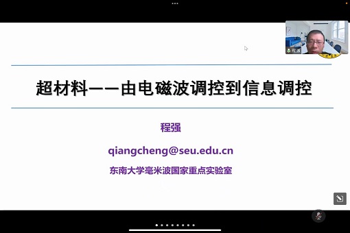 4月23日晚7点,电信院•智荟高端论坛第四期特邀东南大学程强教授作题为“超材料---由电磁波调控到信息调控”学术报告,本次报告由电信院万发雨教授主持,以线上腾讯会议的形式举行,吸引全院师生二百余人。