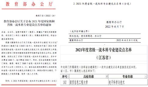 近日,教育部办公厅印发了《关于公布2021年度国家级和省级一流本科专业建设点名单的通知》(教高厅函[2022]14号),电子与信息工程学院电子科学与技术专业获批2021年度省级一流本科专业建设点。目前,学院获批国家级一流本科专业建设点2个,省级一流本科专业建设点1个,学院专业建设实现新突破!