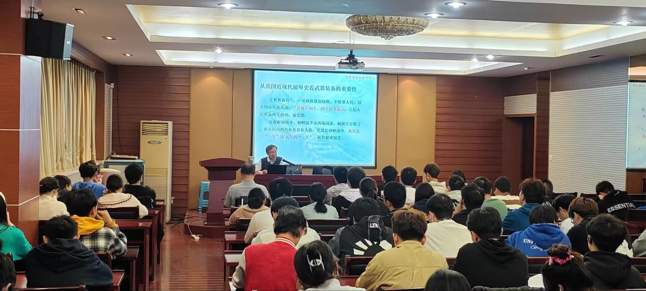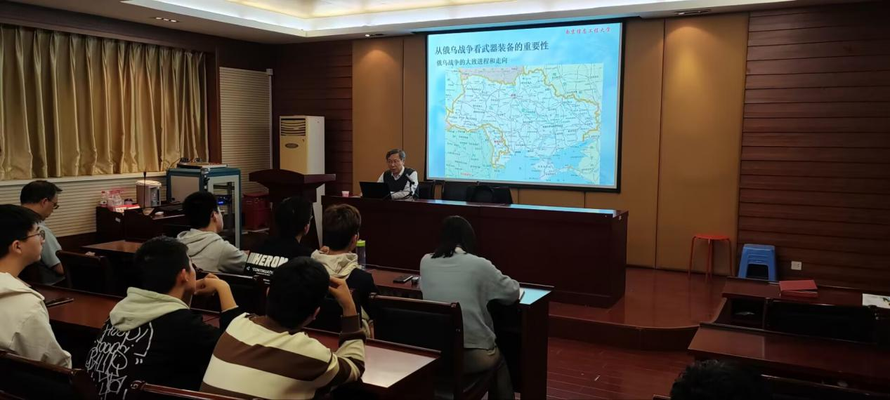 戴跃伟教授详细介绍了武器装备的发展历史,从古代兵器论著、到近现代史、再到俄乌战争,说明武器装备的发展及其重要性。随后,他向同学们深入讲解了武器装备的种类及用途,并点明了武器发展的方向——趋向无人化和自动化。戴跃伟依据同学们的专业特点,鼓励他们在通信领域上奋力拼搏有所作为,积极投身于祖国的国防事业。