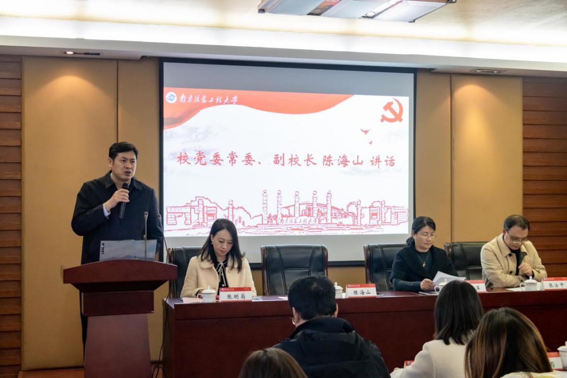 陈海山在讲话中充分肯定了电信院学科建设、科学研究、人才培养等方面所取得的成绩。他强调,要推进学院高质量发展就要坚持党建引领,筑牢发展之基,切实加强党的领导,全面贯彻党的教育方针;要秉持立德树人,铸就育人之魂,全体教师落实三全育人,在人才培养方面发挥更加积极的作用;要凸显学科优势,努力争创一流,持续推进学科专业建设,进一步提升建设质量和水平。陈海山希望电信院进一步明确今后一段时间的发展目标和工作路径,围绕学校发展大局,领导班子敢于担当,全院教师努力拼搏,为推进信息工科发展,进而全力推动我校一流特色研究型大学建设作出更重要的贡献。