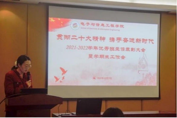 为加强学院班主任队伍建设,促进学生及班级管理经验交流,共同推动电信院学风建设和学生内涵发展,12月7日,电信院在学科二号楼N201召开“贯彻二十大精神 携手奋进新时代”电子与信息工程学院2021-2022学年优秀班主任表彰大会。院长张治中、党委书记张明菊、副院长刘光杰、党委副书记、副院长叶玉娣、团委书记金红以及全体班主任和辅导员出席会议,会议由辅导员黄开洁主持。