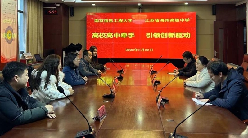 在新海高级中学,叶玉娣一行与校党委书记、校长顾爱军,纪委书记李红宝,高三年级主任陈娟开展了座谈会。双方分别介绍了学校概况、近年来的教育教学情况及取得的成绩,希望能在学生报考、人才培养、党建共建、特色教育等方面开展更多的合作,实现双高融通。校方表示会进一步发挥生源基地中学的积极作用,继续为南信大输送更多的高质量生源。