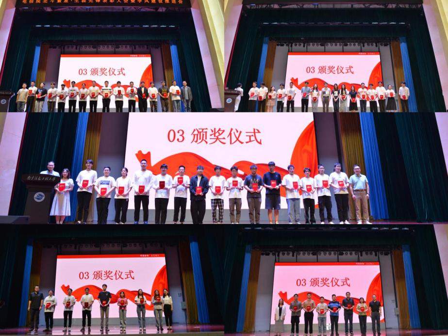 刘光杰宣读了电信院2023届北斗繁星•生涯先锋表彰决定,包括244位考研先锋、46位就业先锋、9位留学先锋、109位研究生发展先锋、11个考研先进集体、7个就业先进集体和9位考研优秀指导教师,与会领导和老师为获表彰的先进个人与集体颁发荣誉证书。