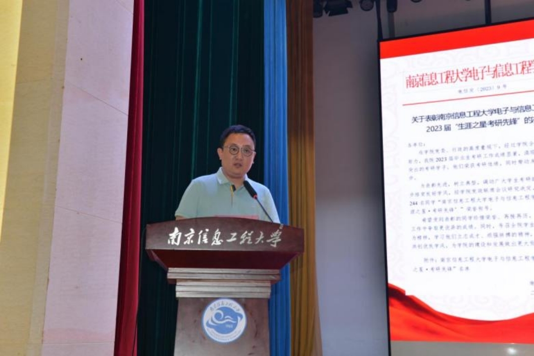 本次表彰大会的顺利召开,既是对2023届毕业生取得优异成绩的肯定,也是发挥朋辈引领作用、给在校同学赓续奋斗的前进动力,更是对学院“北斗繁星”育人体系的重要总结与回顾。电信院将坚守立德树人根本任务,以学风建设为主线,以考研就业工作为抓手,提升人才培养质量,促进学生全面发展,为党育人、为国育才,培养具有家国情怀、工匠精神和文化自信的信息与通信领域的“北斗繁星”。