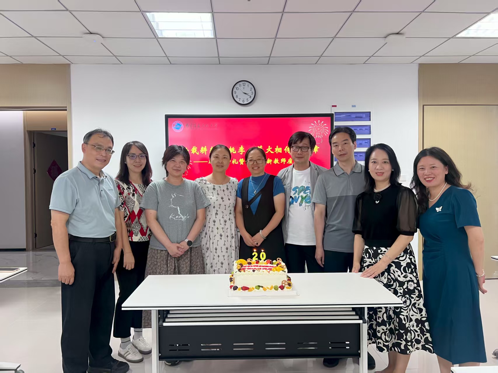 全体参会教师向坚守岗位二十周年的老师们送上祝福蛋糕,向老教师们致敬匠心、致敬坚守,期盼他们继续以德化人、以教立身;也祝愿青年教师传承初心、精进不休,与学院同成长、共奋进,也期盼电信院未来科研硕果累累,桃李遍天下!